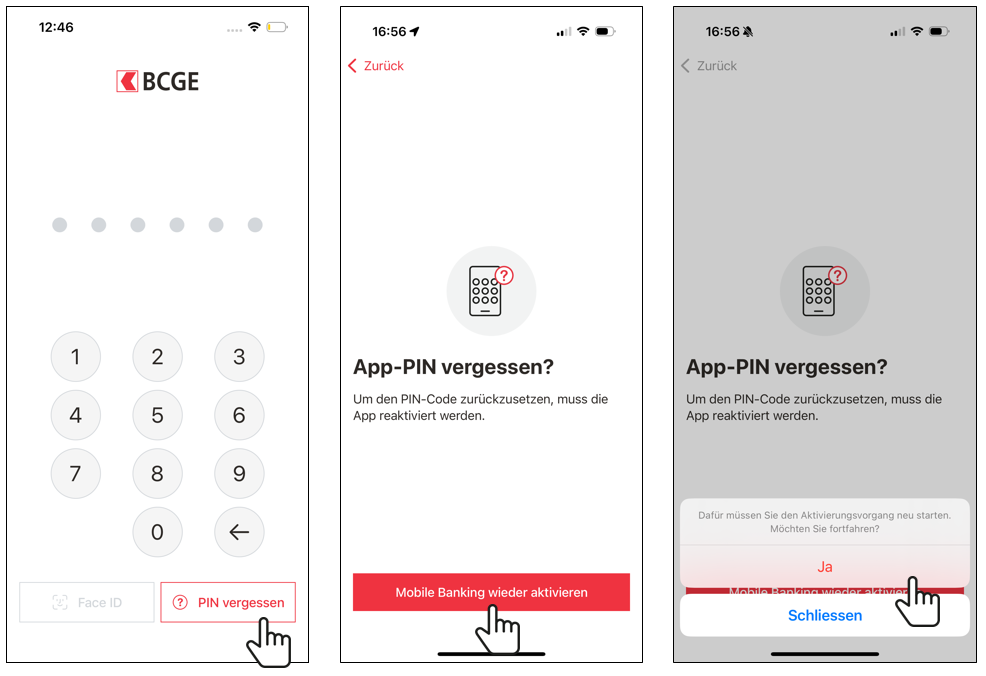 • Es ist nicht möglich, Ihren PIN-Code für das BCGE Mobile Netbanking zu ändern.