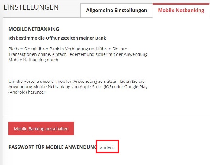 Mobile Netbanking : Wie ändere ich das Passwort auf der Mobile Netbanking-Anwendung ?