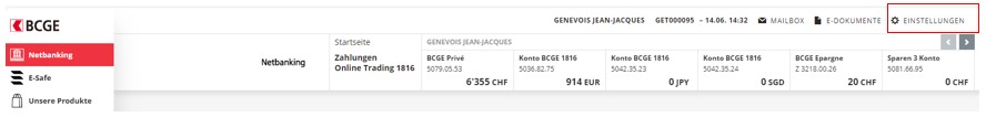 2. Loggen Sie sich gleichzeitig über den Kundenbereich ins BCGE Netbanking ein.