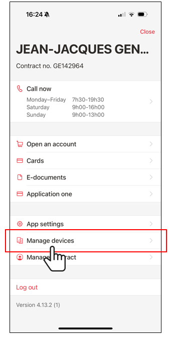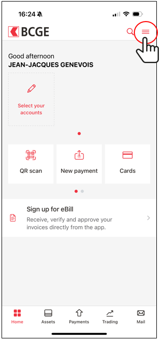 1. Log in to the BCGE Mobile Netbanking app that your contract is already linked to