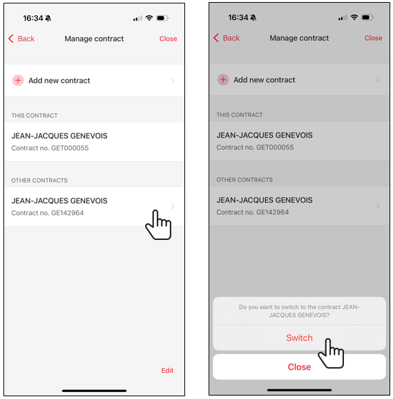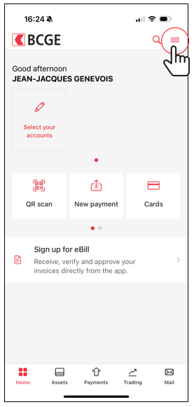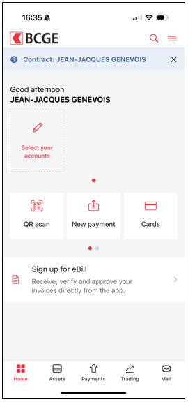 46Follow the instructions below to switch from one contract to another on your BCGE Mobile Netbanking app: