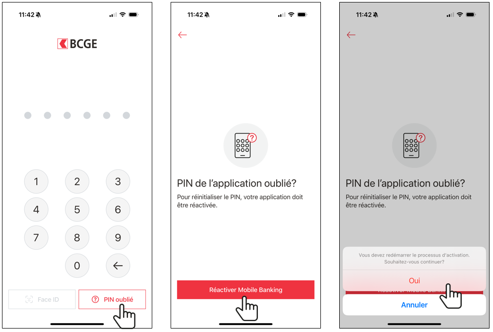 2. Cliquez sur le bouton PIN oublié dans votre application :