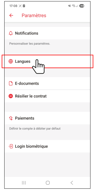 La langue de votre application peut être modifiée directement depuis les paramètres :