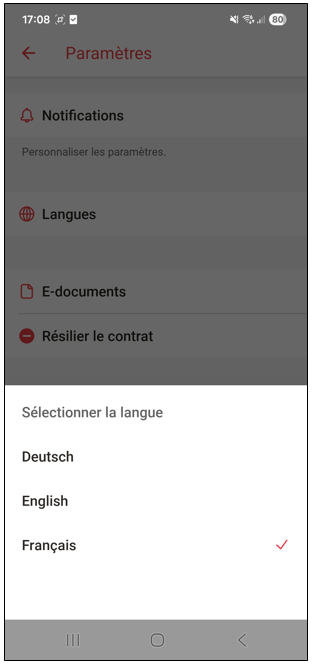Information : Si la langue de votre appareil n'est ni le français, l'anglais ni l'allemand, l'application s'affichera en anglais.