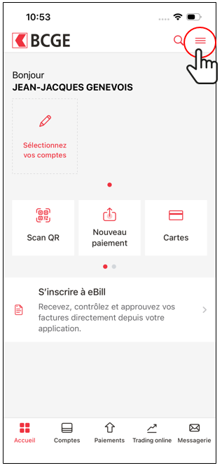 1. Connectez-vous à votre application BCGE Mobile Netbanking