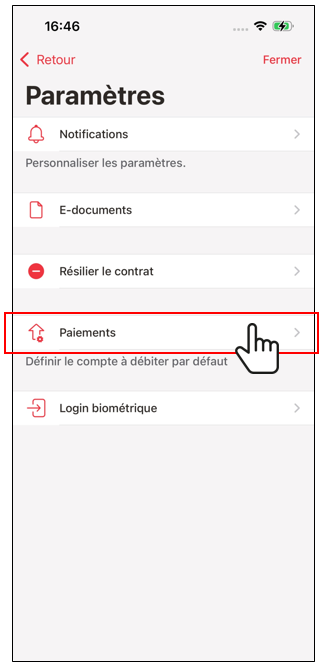 27Suivez les étapes ci-dessous pour définir un compte de débit par défaut pour vos paiements dans votre application BCGE Mobile Netbanking :